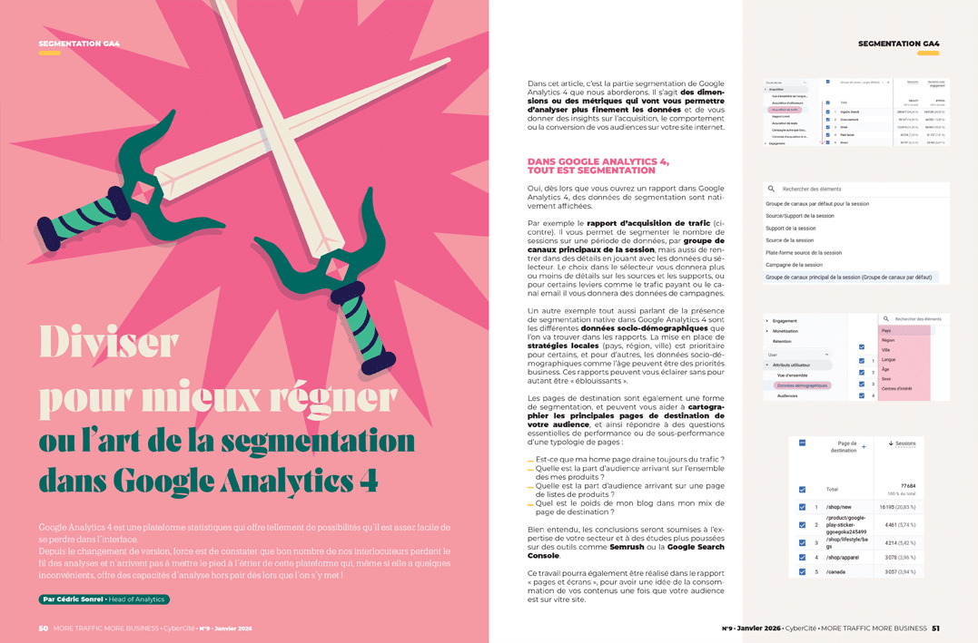 Si Google Analytics 4 peut désorienter, sa segmentation reste un outil clé pour explorer l’acquisition, le comportement et la conversion de vos utilisateurs.